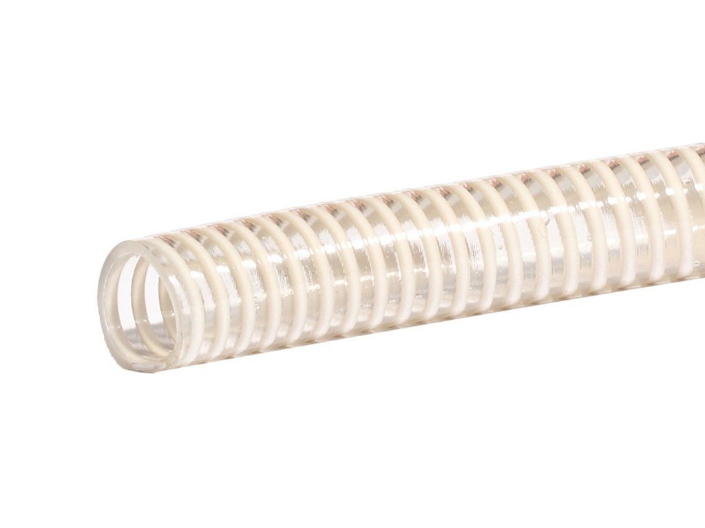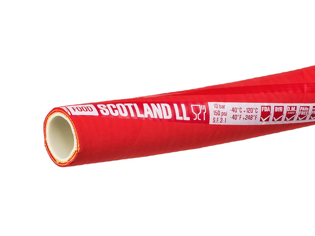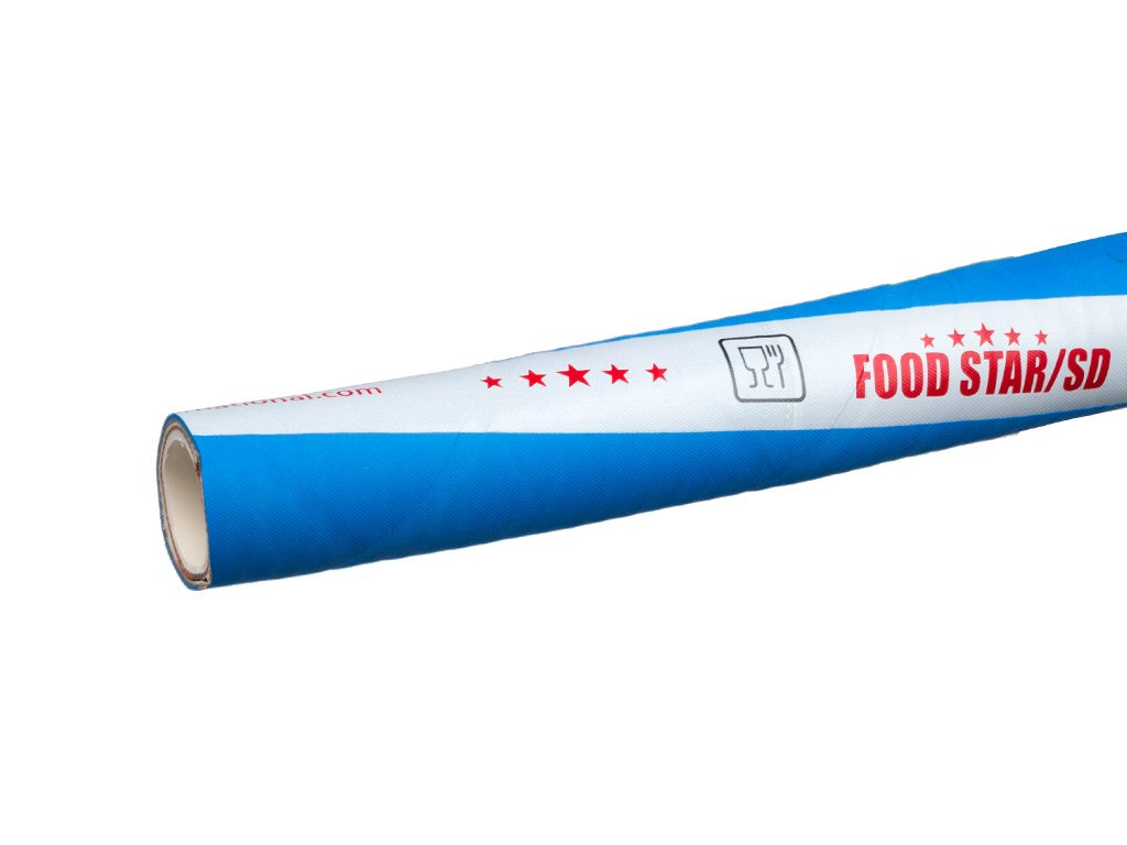Food hoses are intended to come into contact with food products and semi-processed food products. They are made from materials approved to come into contact with food. Their inner layer is made of rubber compounds, which are white, odour-free and taste-free but also of PVC, polyethylene and other polymers that feature high level of purity, do not contain harmful additives (plasticisers, fillers, stabilisers, colourants etc.) deteriorating organoleptic characteristics of transferred products. Depending on their type, the hoses are suitable for such foodstuffs as, for example: drinking water, milk and dairy products, alcohol, fruit juices, beverages, fats, oils etc. These hoses can be also used in the pharmaceutical and cosmetics industry.
