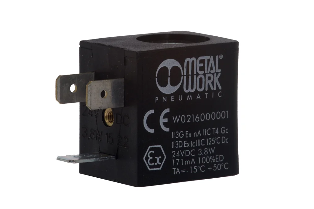 The 22 mm coil designed for PIV.I valves with O8 shaft offers reliable performance and durability, meeting both UL and CSA standards. Built with insulation class F155, it ensures stable operation even under demanding conditions, while the wide voltage tolerance from -10% to +15% provides flexibility and consistent functionality across various applications. Its IP65 protection degree according to EN60529, combined with a secure connector, guarantees resistance to dust and water, making it suitable for challenging industrial environments. Engineered for efficiency and long service life, this coil delivers dependable power, reduced maintenance needs, and optimal compatibility, making it an excellent choice for professionals seeking quality and safety in fluid control systems.