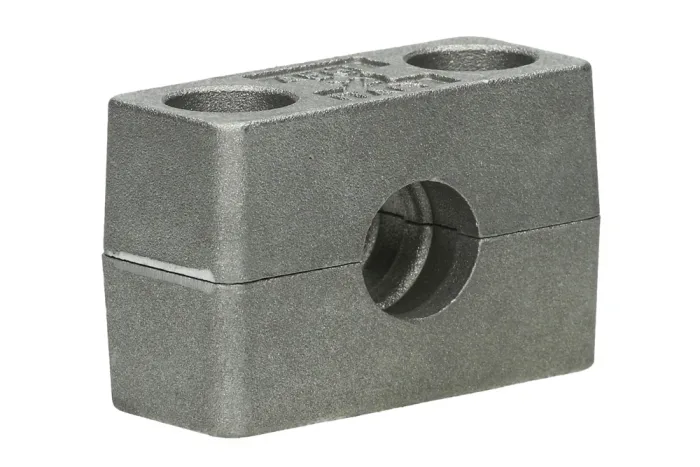 The two-part insert of the DIN 3015 type 201 clamp is manufactured in accordance with the strict requirements of the DIN 3015 standard, ensuring reliability and precision in demanding applications. Designed with a profiled, grooved surface, it provides a secure and stable fit for pipes, effectively minimizing vibration and enhancing durability of the entire installation. Made from high-quality aluminum, the insert combines strength with lightweight performance, offering excellent resistance to wear and long service life even under intensive use. With an impressive operating temperature range of up to +350°C, it is perfectly suited for high-temperature environments, making it an ideal choice for industries such as energy, chemical processing, hydraulics, and heavy machinery. This robust solution guarantees consistent performance, safety, and efficiency, supporting smooth operation of critical systems while reducing maintenance needs and downtime.