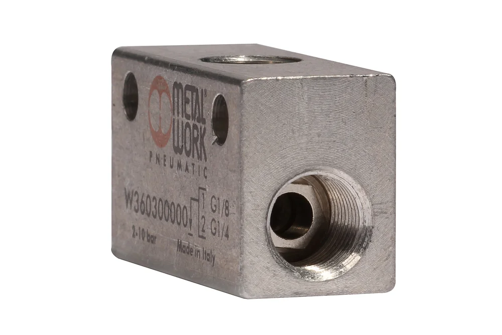 The VOR series higher signal valve is a reliable solution for applications requiring precise signal separation, ensuring that the stronger of two input signals is always selected without any mutual interference. Designed to operate within a pressure range of 2 to 10 bar and a temperature span from -10°C to +80°C, it guarantees consistent performance even in demanding industrial environments. Its robust aluminum body provides durability and resistance to wear, while the NBR sealing ensures tightness and long-lasting efficiency. Thanks to its compact design and high-quality materials, the valve is easy to integrate into various pneumatic systems, delivering dependable functionality and reducing downtime. Ideal for industries seeking efficiency, reliability, and precision, the VOR series valve enhances system performance while maintaining low maintenance requirements.