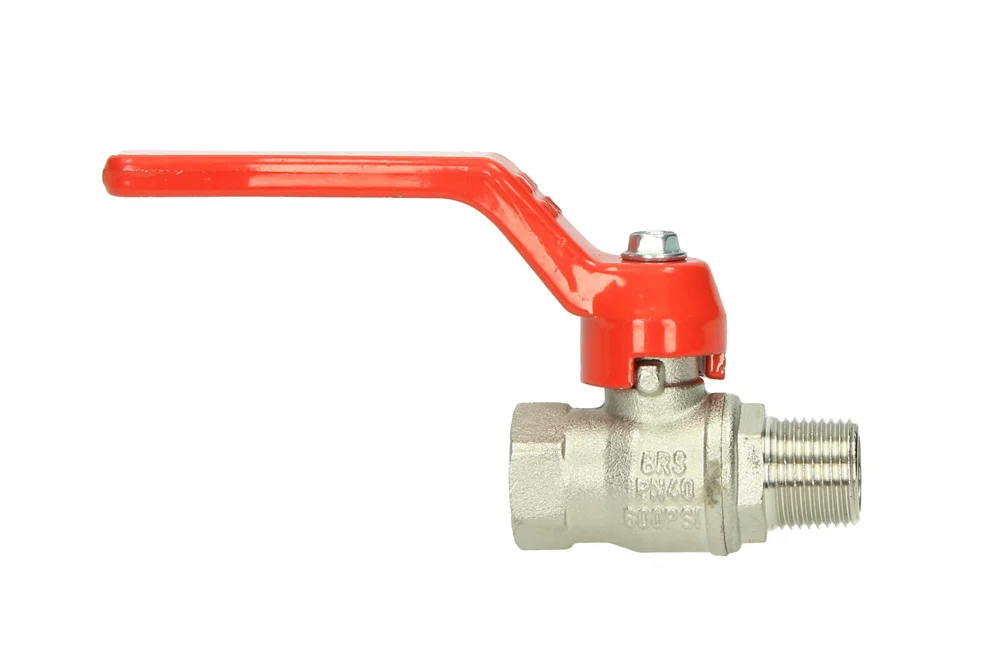 The universal ball valve type 4330 is a reliable solution designed for demanding industrial applications, ensuring safe and efficient flow control across a wide range of media such as air, gases, water, chemicals, and petrochemical products, provided the chemical compatibility of materials is observed. Manufactured with a durable nickel-plated brass body and a chrome-plated brass ball, it guarantees long-lasting resistance to wear and corrosion, while the PTFE ball sealing and NBR stem sealing deliver excellent tightness and operational safety. The robust aluminum lever allows for precise and effortless handling, making the valve easy to operate even under challenging conditions. Compliant with the PED Directive 2014/68/EU, this valve meets the highest European safety and quality standards, offering peace of mind in critical installations. Designed with BSP male thread connections, it ensures straightforward integration into existing systems. With an operating temperature range from -20°C to +110°C and pressure resistance dependent on temperature, the type 4330 ball valve provides versatile performance and reliability, making it an ideal choice for industries seeking efficiency, durability, and compliance in one compact solution.