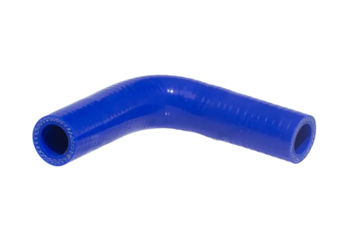 The 90° silicone elbow reinforced with durable polyester is a reliable solution for vehicle cooling and heating systems, designed to transport water, coolant, clean air, or air containing minimal oil mist. For applications involving oils, fuels, or higher oil content, a specialized version with a fluorosilicone inner layer ensures maximum resistance and durability. With a standard arm length of 100 mm and additional options of 152 mm or 250 mm, this hose offers flexibility to meet diverse installation needs. Manufactured from high-quality silicone rubber with polyester reinforcement, it combines excellent mechanical strength with long-lasting performance. Meeting SAE J20R1 standards, it guarantees safety with a 3:1 pressure factor and operates efficiently under working pressures ranging from 1.83 bar to 8.75 bar, depending on diameter. Its robust design withstands extreme temperatures from -50°C to +180°C, while the standard hardness of approximately 65° Shore (A) and density of 1.26 g/cm³ ensure optimal balance between flexibility and stability. Finished in a striking blue outer layer, this hose not only delivers technical reliability but also enhances the professional appearance of any engine bay.