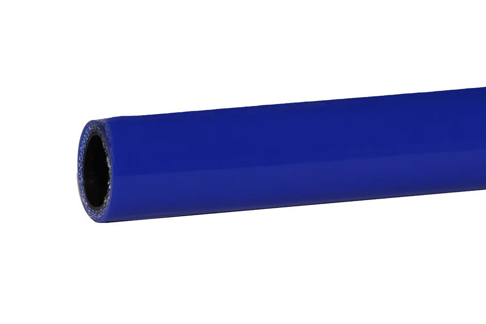 The SUPER FLEX hose is a high-performance solution engineered for demanding cooling and heating systems in vehicles, ensuring reliable operation with water, coolant fluids, clean air, or air containing minimal oil mist. Manufactured from premium silicone rubber and reinforced with durable polyester spacers and a robust 1.2 mm steel spiral, it delivers exceptional flexibility and strength even under extreme conditions. With a working pressure range from 2 bar up to 8.12 bar, a pressure safety factor of 3:1, and compliance with SAE J20R1 standards, this hose guarantees safety and durability in professional automotive applications. Its outstanding thermal resistance from -50°C to +180°C makes it suitable for both low and high-temperature environments, while the standard hardness of approximately 65° Shore (A) and density of 1.26 g/cm³ ensure consistent performance. The striking blue outer layer not only enhances visual appeal but also reflects the premium quality of the product. Available in a standard 1000 mm length, the SUPER FLEX hose is the ideal choice for workshops, manufacturers, and automotive enthusiasts seeking a reliable, long-lasting, and efficient solution. For applications involving oils, fuels, or oil mist, a specialized version with fluorocarbon rubber is recommended to ensure maximum compatibility and extended service life.