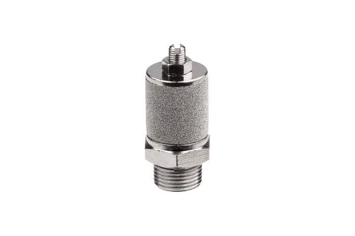 The MWSVL silencer with throttling and external thread is a reliable solution designed for compressed air systems, ensuring effective noise reduction and improved working comfort. Engineered from high-quality nickel-plated brass and nickel-plated sintered bronze, it combines durability with excellent resistance to wear and corrosion, making it suitable for demanding industrial environments. When installed, the silencer achieves an average noise reduction of around 25 dB, measured at a supply pressure of 5 bar, at a distance of 1 meter, and at a 45° angle from the silencer axis, with performance varying depending on the selected size. Its robust construction allows operation under working pressures up to 12 bar and within a wide temperature range from -10°C to +80°C, ensuring reliable functionality in diverse applications. Compact and easy to install, the MWSVL silencer not only minimizes disruptive noise but also contributes to a safer and more efficient workplace, making it an essential component for modern pneumatic systems.