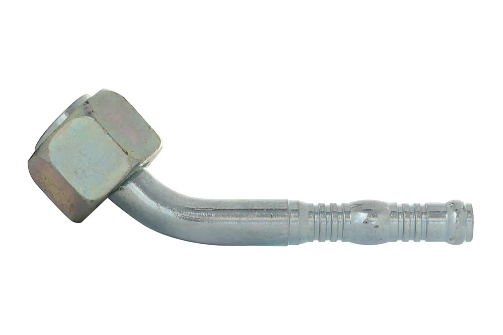 The 45° BURGACLIP fitting with internal UNF ORFS thread and flat seal is a reliable solution designed for secure and efficient connections in air conditioning systems. Engineered for use with the 3090 type air conditioning hose, it ensures a precise and durable link between rubber hoses and system components, supporting optimal performance and long-lasting functionality. Manufactured from high-quality steel, this fitting offers excellent resistance to pressure and wear, making it ideal for demanding applications where durability and safety are essential. Its 45° angled design provides flexibility in installation, allowing for easier routing of hoses in confined spaces while maintaining a tight, leak-free seal. To complement the fitting, a full range of clips and clamps is available separately, enabling a complete and professional assembly tailored to specific system requirements. This makes the BURGACLIP fitting not only a practical choice but also a cost-effective solution for ensuring reliable operation of air conditioning systems in automotive and industrial environments.