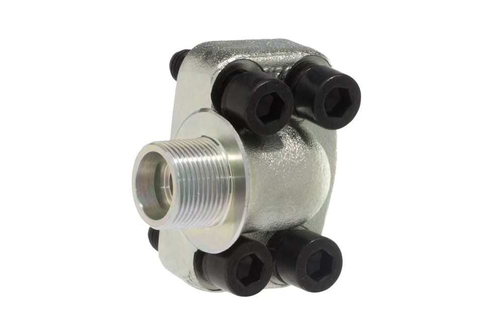 The 90° SAE 3000 flanged connection with a compact 24° DIN 2353 socket is designed for reliable integration with metric tubing in demanding hydraulic systems. Engineered for durability and precision, it comes complete with mounting screws and an NBR O-ring seal to ensure secure, leak-free performance. Available in both light (L) and heavy (S) series, this versatile component adapts seamlessly to a wide range of applications, offering flexibility and strength where it matters most. Manufactured from high-quality carbon steel with a galvanized finish, it provides excellent resistance to wear and corrosion, extending service life even under intensive operating conditions. With a temperature range from -20°C to +100°C, it guarantees consistent functionality in diverse environments, making it the ideal choice for industries seeking efficiency, safety, and long-term reliability in their hydraulic connections.