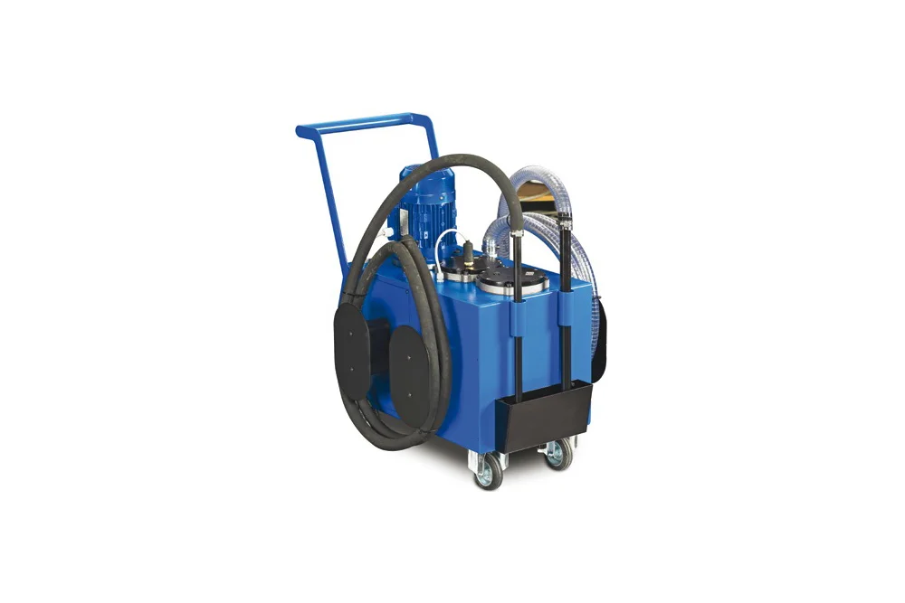 This advanced oil service unit is designed for efficient filling, suction, and filtration of oil from press tanks, industrial machines, and hydraulic systems, ensuring reliable operation and extended equipment life. Powered by a robust 400V, 0.55 kW electric drive, it delivers a high-performance flow rate of 39 l/min, making it ideal for demanding industrial environments. The system is equipped with a precision filtration setup, featuring a 25 µm filter as standard, with optional 10 µm and 20 µm variants for enhanced cleanliness, complemented by a 125 µm suction filter to protect the pump. An integrated electronic oil flow meter provides accurate monitoring, while the electronic filter replacement indicator ensures timely maintenance and uninterrupted performance. With a solid construction and a weight of 87 kg, this device combines durability with user-friendly operation, offering a professional solution for companies seeking to optimize hydraulic oil management and maintain the highest standards of system reliability.