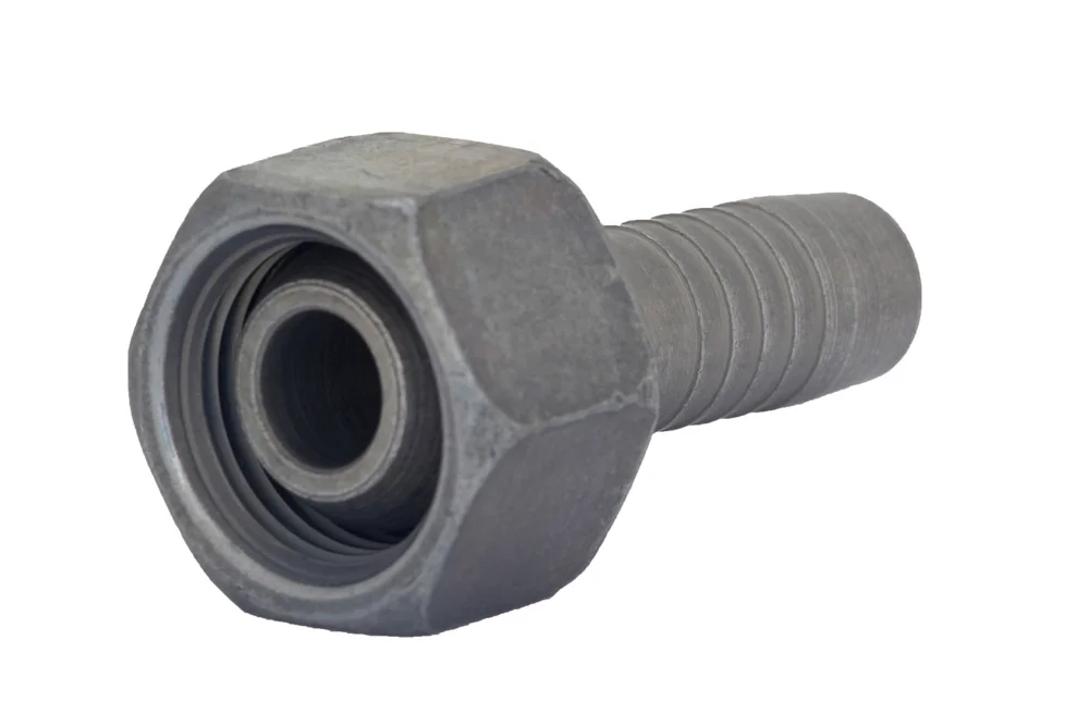 The standard hydraulic end type Z with a classic hydraulic tail for hose connection is equipped with an internal BSP thread and nut, featuring a precise 60° sealing cone (DKR) that ensures reliable tightness and durability in demanding applications. Designed for secure crimping with hydraulic and industrial hoses, it is compatible with crimping sleeves tailored to specific hose types, guaranteeing a safe and efficient assembly. Manufactured from high-quality carbon steel and finished with an advanced zinc-nickel coating of 6–10 µm thickness, the fitting offers outstanding protection against wear and corrosion, maintaining performance even after 720 hours of exposure in a salt spray chamber. This robust construction makes it an excellent choice for industries requiring long-lasting, leak-free hydraulic connections, from heavy machinery and construction equipment to industrial systems operating under high pressure. The combination of precision engineering, superior surface treatment, and proven resistance to extreme conditions ensures reliability, safety, and extended service life, making it a trusted solution for professionals seeking top-quality hydraulic components.