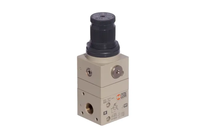 The GS series precision pressure reducing valves with quick venting are engineered to deliver maximum accuracy and reliability in pneumatic systems, ensuring a stable set pressure while instantly releasing any excess. Designed for demanding applications such as actuators with reduced friction coefficients or pneumatic springs with constant characteristics, these valves guarantee exceptional performance where precision is critical. Their innovative construction with two identical, opposing regulating valves—separately managing supply and outlet connections—provides both high flow capacity during aeration and venting, as well as outstanding setting accuracy. Easy to integrate into various systems, the valves can be mounted directly through body holes or with dedicated brackets, offering flexible installation options. With output pressure ranges of 0–2, 0–4, and 0–8 bar, supply pressure up to 10 bar, and sensitivity of just 30 mbar, they ensure precise control even in the most delicate processes. Operating with filtered, non-lubricated compressed air, they are suitable for temperatures from -10°C to +50°C, making them versatile across multiple environments. Available with BSP 1/8″ and 1/4″ connections, including an additional port for a pressure gauge, the GS series delivers impressive flow rates of 1200 l/min (1/8″) and 1380 l/min (1/4″) at 6 bar input pressure, ensuring efficiency, durability, and consistent performance in every application.