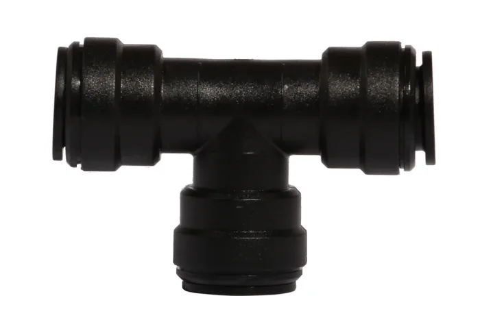 The SPEEDFIT tee fitting is a reliable and versatile solution designed for use in compressed air installations, ensuring quick and secure connections with minimal effort. Manufactured from durable plastic, it guarantees long-lasting performance while maintaining a lightweight structure that simplifies installation. Compatible with both plastic and metal pipes, including copper, brass, and aluminum, it offers exceptional flexibility for a wide range of applications. Engineered to withstand working pressures of up to 10 bar at +23°C and 7 bar at +70°C, it delivers consistent efficiency even under demanding conditions. With an operating temperature range from -20°C to +70°C, this fitting ensures dependable functionality in diverse environments, making it an excellent choice for professional systems where reliability, safety, and ease of use are essential.