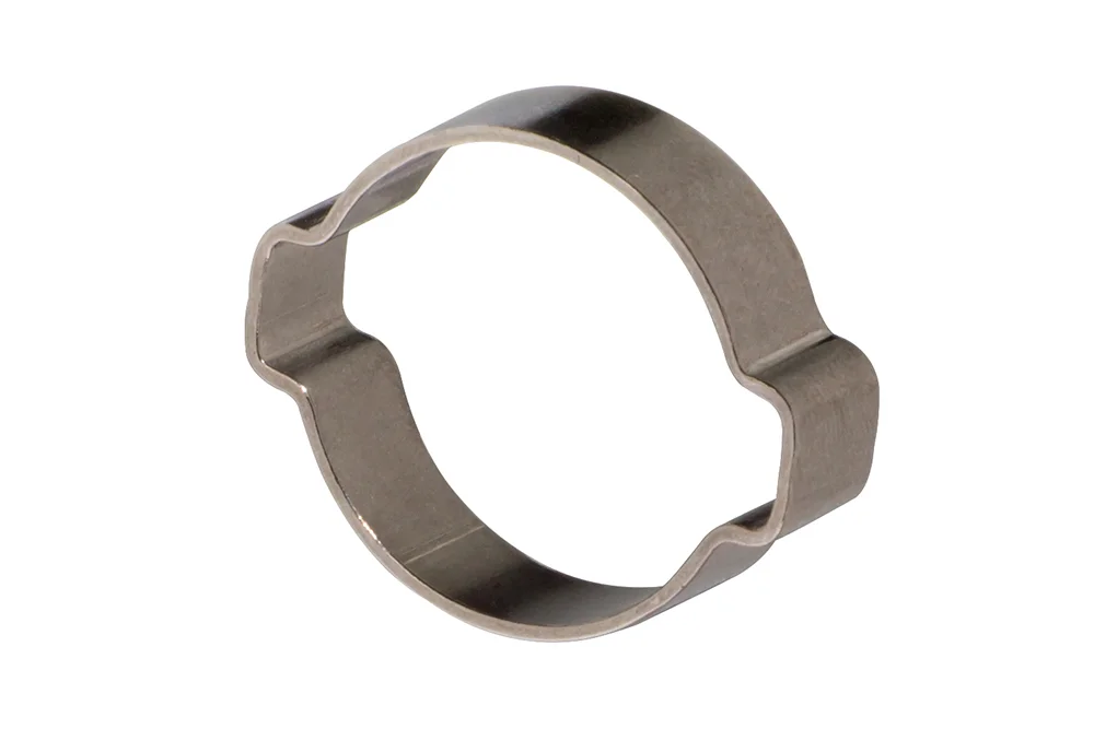 The EAR CLIP clamp ring with two ears is a reliable solution for securing a wide range of low-pressure hoses, whether reinforced with a braid or without additional support. Crafted from durable AISI 304 stainless steel, it ensures long-lasting resistance to wear, corrosion, and demanding working conditions. Its smart two-ear design allows for quick and effortless installation with the use of dedicated pliers, making it an efficient choice for both professional and industrial applications. The carefully rounded inner edges of the ring provide optimal protection, preventing hose damage and ensuring a secure, leak-free connection. Thanks to its robust construction and user-friendly assembly, this clamp delivers consistent performance, offering a practical and cost-effective fastening method that enhances safety and reliability in every system.