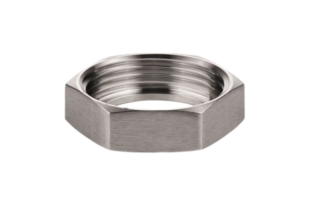 The nut manufactured in accordance with BS 4825-5 is designed specifically for RJT connections, ensuring a secure and reliable assembly in hygienic process systems. Featuring an inch RJT thread, it guarantees precise compatibility and ease of installation, making it a trusted choice for industries where safety and efficiency are paramount. With a maximum allowable working pressure of up to 10 bar, the connection delivers dependable performance under demanding operating conditions. The operating temperature range is determined by the selected gasket material, allowing flexibility to adapt to various applications and process requirements. Produced from high-quality AISI 304 stainless steel, the nut offers excellent resistance to corrosion, durability, and long service life, even in environments exposed to moisture or aggressive cleaning agents. Its robust construction and compliance with international standards make it an ideal solution for food, beverage, dairy, and pharmaceutical industries, where hygiene and reliability are essential. By combining strength, precision, and adaptability, this RJT nut ensures consistent performance and helps maintain the integrity of critical production processes.