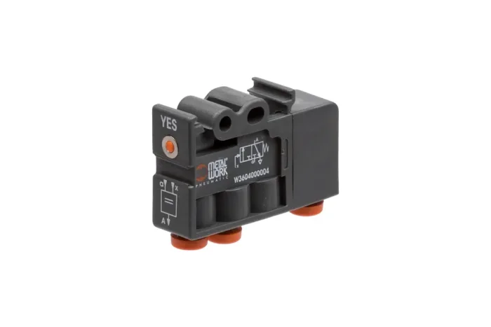 The logical element YES-confirmation is a compact and efficient pneumatic component designed for reliable performance in diverse applications. Controlled by compressed air and automatically reset by a durable mechanical spring, it ensures consistent operation with minimal maintenance. Its universal mounting capability allows flexible installation in any position, while the robust construction combines a plastic body, aluminum spindle, and NBR sealing for long-lasting durability. With a nominal flow of 100 Nl/min at 6 bar and a pressure drop of 1 bar, it guarantees optimal airflow efficiency. Integrated plug couplings for 4 mm tubing simplify connection and speed up assembly, making it highly user-friendly. The element operates within a wide temperature range from -10°C to +60°C and supports working pressures from 0 to 8 bar, with control pressures between 1.5 and 8 bar, ensuring adaptability to various pneumatic systems. This reliable solution enhances system performance, offering precision, safety, and versatility for modern automation needs.